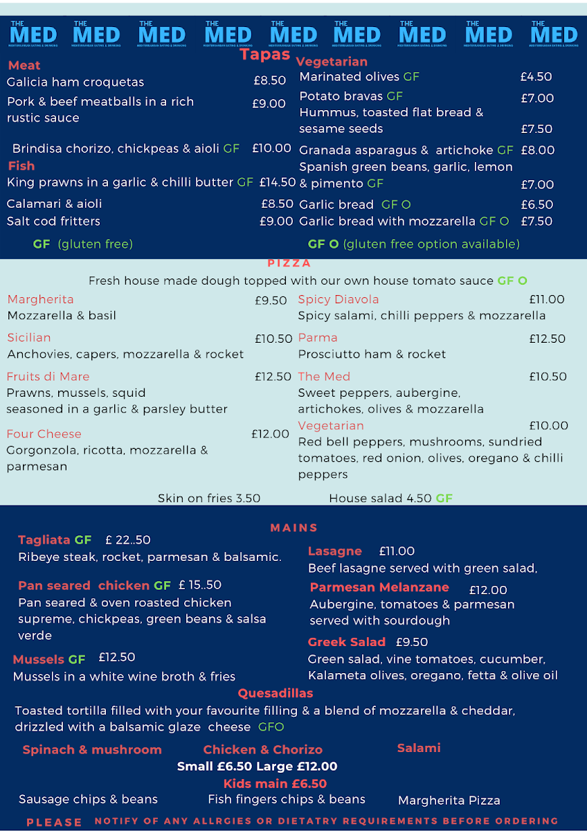 Welcome to The Med, a charming culinary haven nestled at 16 The Parade in Margate. This vibrant eatery boasts an array of delicious dishes that cater to all palates, with standout offerings like the Sicilian pizza, Seafood pasta, and house salad. Guests rave about the Four Cheese and Spicy Diavola pizzas, expertly crafted and bursting with flavor.